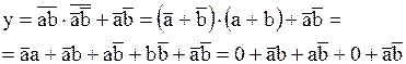 Эти две формулы логически абсолютно эквивалентны, хотя переход из одной в другую оказывается невозможным. Эквивалентность приведенных функций можно проверить при помощи следующей таблицы истинности.