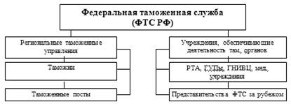Важнейшими элементами организации таможенного дела являются выбор оптимальной структуры таможенной службы и варианта размещения ее органов на территории страны. Таможенная служба строится и функционирует как единая система таможенных органов Российской Федерации. Принцип единой системы таможенных органов неразрывно связан с однородными принципами, на которых основывается организация и осуществление таможенного дела: единой таможенной политики, единой таможенной территории, единого таможенного законодательства, единого тарифного регулирования и сочетания его с мерами экономического пространства, закрепленного в ч.1 ст.8 Конституции РФ. Таможенный кодекс Российской Федерации в понятие единой системы таможенных органов включает название тех органов, которые эту систему образуют: ФТС Российской Федерации, региональные таможенные управления (РТУ) РФ, таможни и таможенные посты РФ, а также порядок их создания, реорганизации и ликвидации. Каждая из этих подсистем является таможенным органом Российской Федерации, имеет статус правоохранительного органа. Управление в таможенных органах как структура носит ступенчатый, иерархический, субординационный характер. Различные уровни управления одновременно выступают и как субъекты и как объекты управления, например: ФТС – субъект управления для регионального таможенного управления и объект для Правительства РФ; РТУ – объект управления для ФТС и субъект управления для таможни и т.д. Поэтому управление в таможенных органах выполняет как исполнительную, так и распорядительную функции. Возглавляет систему таможенных органов России Федеральный орган исполнительной власти, уполномоченный в области таможенного дела – Федеральная таможенная служба РФ. Руководитель ФТС РФ назначается Указом Президента Российской Федерации. ФТС России обеспечивает непосредственную реализацию задач в области таможенного дела, единообразие применения таможенного законодательства всеми таможенными органами на территории России. ФТС также отвечает за обеспечение международных обязательств РФ в области таможенного дела, организацию сотрудничества с таможенными и другими компетентными органами иностранных государств, международными организациями, занимающимися вопросами таможенного дела. К органам управления в таможенной системе РФ относятся: ФТС РФ, региональные таможенные управления и таможни (рис. 6).