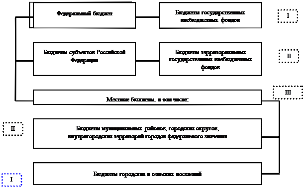 Бюджетное устройство представляет собой организационные принципы построения бюджетной системы, ее структуру, взаимосвязь объединяемых в ней бюджетов. Под бюджетной системой понимают основанную на экономических отношениях и государственном устройстве, регулируемую нормами права совокупность бюджетов различных территориальных уровней. Бюджетное устройство определяется формой государственного устройства. По форме государственного устройства страны подразделяются на 2 группы: простые (унитарные) и сложные. Простое (унитарное) государство – это единое, централизованное государство, состоящее из различных административно-территориальных единиц, не имеющих в своем составе других государств или государственных образований. Сложные государства – это государства, которые представляют собой либо союз государств, либо общность относительно самостоятельных территориальных образований. Примерами сложных государств служат федерация, конфедерация, империи. В унитарных (единых) государствах бюджетная система состоит из двух уровней – государственный бюджет и местные бюджеты (доходы и расходы местного бюджета не входят в федеральный бюджет, формируются и используются территориями самостоятельно). В качестве примера можно упомянуть о бюджетной системе Великобритании, Турции, Испании, Италии, Японии и др. В федеративном государстве бюджетная система является трехуровневой: 1. государственный бюджет (федеральный бюджет или бюджет центрального правительства) 2. бюджеты членов Федерации (в США – штатов, в Германии – земель (ландов), в Канаде – провинций, в РФ – субъектов Федерации) 3. местные бюджеты. Все бюджетные уровни существуют самостоятельно и не входят по доходам и расходам в вышестоящие бюджеты. Бюджетное устройство РФ – это организация бюджетной системы, принципы ее построения. Бюджетная система РФ представляет основанную на экономических отношениях и государственном устройстве, регулируемую нормами права совокупность федерального бюджета, бюджетов субъектов федерации, местных бюджетов и бюджетов государственных внебюджетных фондов. В настоящее время структура БС РФ в связи с вступлением в силу закона РФ «об общих принципах организации местного самоуправления в РФ» (№131-ФЗ) с 1.01.2006 г. выглядит таким образом. То есть бюджетная система РФ состоит из следующих уровней: 1 уровень - Федеральный бюджет и бюджеты государственных внебюджетных фондов; 2 уровень - Бюджеты субъектов РФ и бюджеты территориальных государственных внебюджетных фондов; 3 уровень - Местные бюджеты, в том числе: бюджеты муниципальных районов, бюджеты городских округов, бюджеты внутригородских муниципальных образований городов федерального значения Москвы и Санкт-Петербурга; бюджеты городских и сельских поселений.
