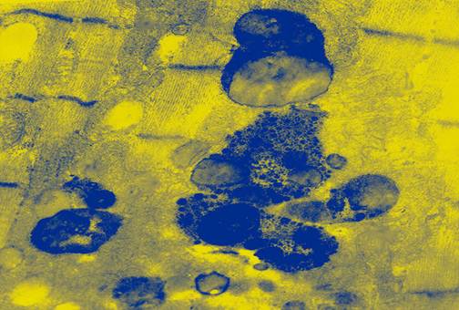 Жиро-белковые пигменты. Это: - липофусцин; - гемофусцин; - пигмент недостаточности витамина Е; - цероид; - липохромы. Первые 4 пигмента обладают одинаковыми физико-химическими свойствами. Их считают разновидностями липофусцина. Липофусцин имеет следующие физико-химические свойства: 1. это зерна золотистого или коричневого цвета, окруженные 3 слойной мембраной, содержащей миелин и ферритин; 2. суданофилен; 3. растворяется в кислотах и жирорастворителях. Синтез пигмента. Стадии: 1. появление в перинуклеарных зонах липопртеидов 2. синтез гранул молодого липофусцина в пластинчатом комплексе 3. образование зрелого липофусцина на приферии клеток в лизосомах. Физиологическая роль. Пигмент отражает процессы аутоксидации и пероксидации в клетке, направленных на обеспечение энергетических потребностей в условия гипоксии. Липофусцин усиленно накапливается в клетке при снижении активности дыхательных ферментов и тем самым обеспечивает жизнедеятельность клетки в плохих условиях. Это пигмент компенсации и приспособления. Отмечается при атрофии органов – бурая атрофия миокарда, печени, а также при усилении функции органов - липофусциноз сердца при митральных пороках, липофусциноз макрофагов при усилении фагоцитоза. Липохромы. Это липиды + предшественники витамина А (каротиноиды). Обладают желтым цветом. И поэтому обусловливают желтую окраску жировой клетчатки, коры надпочечников, желтого тела яичников. Они усиленно накапливаются в жировой клетчатке при сахарном диабете, авитаминозах, кахексии, придавая ей охрянно-желтый цвет. Отмечаются также в костях, в коже. Накопление липохромов отражает глубокие нарушения липидно-витаминного обмена.
