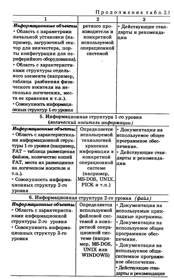 Механизм следообразования, как пишет О. Я. Баев, представляет собой «наиболее стабильный и наиболее значимый элемент такой общей категории, как криминалистическая характеристика преступлений»[21]. В соответствии с классическим определением Р. С. Белкина под механизмом следообразования понимается «специфическая конкретная форма протекания процесса, конечная фаза которого представляет собой образование следа-отображения. Элементами этого механизма являются объекты следообразования — следообразующий, следовоспринимающий и вещество следа, следовой контакт как результат взаимодействия между ними вследствие приложения энергии к объектам следообразования»[22]. В соответствии с положениями названного криминалистического учения все следы совершения любого преступления делятся на две основные группы: • «материальные», т.е. зафиксированные в виде изменения внешней среды и объектов, ее образующих; • «идеальные», т.е. оставшиеся в памяти преступника, соучастников и свидетелей. Подобное представление, показавшее свою значимость в течение длительного промежутка времени при расследовании всех «традиционных» преступлений, оказалось недостаточно эффективным при оперировании со следами в сфере компьютерной информации. Анализ причин такой неэффективности показал, что существующее учение о механизме следообразования исходит из «механистического» понимания явлений и исследует закономерности, связанные, в основном, с механическим (контактным) взаимодействием следообразующего и следовоспринимающего объектов. При этом понятие «следа» в большинстве случаев сводилось к «следу-отображению» и определялось как «отображение на одном объекте внешнего строения другого материального объекта»[23]. Совершенно иную картину можно наблюдать при расследовании преступлений в сфере компьютерной информации. Основными взаимодействующими объектами при совершении данного вида преступлений являются информационные объекты (наборы данных и программы), обладающие сложной иерархической структурой, при рассмотрении которой говорить о внешнем строении (т.е. какой-либо материальной форме проявления) или его особенностях не приходится. Одним из первых на этот факт обратил внимание А.Н. Яковлев, отметивший, что «вовлеченные в событие преступления информационные объекты на машинных носителях лишены такой характеристики, как внешнее строение»[24]. Приведенные обстоятельства вынуждают по-новому взглянуть и уточнить практически все основные элементы криминалистического учения о механизме следообразования. Базовым понятием рассматриваемого учения служит понятие «следа». В соответствии с наиболее общим определением, предложенным Р. С. Белкиным, «следами преступления являются любые изменения среды, возникшие в результате совершения в этой среде преступления»[25]. Таким образом, сначала необходимо четко уяснить сущность и особенности строения среды совершения преступления — «кибернетического пространства». Особенности компьютерной информации, а также принципы построения автоматизированных информационных систем позволили предложить следующее представление «кибернетического пространства» как сложносоставного многоуровневого информационного объекта (табл. 2.1).