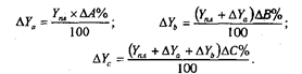 Способ используется только для мультипликативных моделей. Кроме того, способ используется в тех случаях, когда в таблице с исходными данными уже имеется расчет относительных отклонений значений фактора, выраженных в %. Способ реализуется следующим образом: для расчета влияния на результат 1-го фактора необходимо исходное значение результата умножить на относительную разницу 1-го фактора и разделить на 100%. Для расчета влияния 2-го фактора нужно к исходному значению результата + значение влияния на результат предыдущего фактора. Затем полученная сумма умножается на относительную разницу 2 фактора и все делится на 100%. Таким образом, наращивая сумму вычисляется значение по 3 и следующему фактору. А затем проверяется расчет аналогично предыдущему методу.