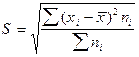 Среднее квадратическое отклонение представляет собой корень квадратный из дисперсии и обозначается S: