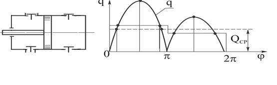 Для однопоршневого насоса двухстороннего действия (рисунок 6.15б) степень неравномерности подачи