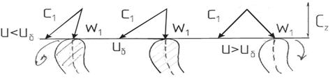Если направление потока совпадает с направлением средней линии профиля ротора, то движение носит безударный характер - режим безударный