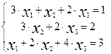 Найдем определитель ==3×(-1)1+1 +0×(-1)2+1 +1×(-1)3+1=3× (12-4)+0+(2-6)=24-4=20. Т.к. ¹0, следовательно, можно применить формулы Крамера.
