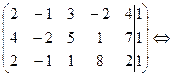 Приведем расширенную матрицу системы к ступенчатому виду:
