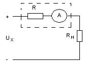 Рисунок 4.4 – Схема измерения тока методом непосредственной оценки Погрешность ∆ = I' — I тем больше, чем больше сопротивление амперметра. Относительная погрешность измерения тока в этом случае