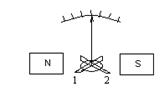 Приборы, в которых противодействующий момент создается не при помощи упругого элемента, а теми же электромагнитными силами, что и вращающий, называются логометрами. У логометров положение подвижной части определяется отношением двух токов. Логометры магнитоэлектрической системы (рис.5.5) имеют подвижную часть из двух жестко скрепленных между собой катушек 1 и 2 (рамок).