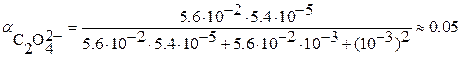Пример: Рассчитать растворимость Ag2C2O4 в его насыщенном растворе при pH = 3.0 и сравнить с растворимостью в чистой воде (солевым эффектом пренебречь). Из справочных данных находим Так как щавелевая кислота двухоснóвная, то в растворе присутствуют ионы