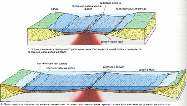 Океанские рифты образуются либо в результате развития континентальных рифтов, либо закладываются на океанической коре.