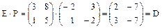 Матрицу Р называют матрица перехода от старого базиса (Е1, Е2,..., Еn) к новому базису (D1, D2,..., Dn). При этом следует обратить внимание на то, что коэффициенты разложения i -го базисного вектора образуют i -й столбец матрицы Р. Если E - матрица из старых базисных векторов, расположенных столбцами, а D - матрица из новых базисных векторов, расположенных столбцами, то связь между старым и новым базисом можно записать в виде матричных уравнений: