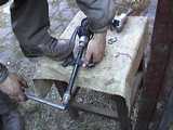 Так что желательно при выпрессовке и последнего подшипника не торопиться и предварительно загнать его в гнездо вилки с помощью тисков или опять же какой-нибудь струбцинки, позволяющих избежать его опасных перекосов с "закусыванием". Поэтому я не рекламирую данное приспособление как универсальное (то есть не только для сборки, но и для разборки шарниров). Тем более, что сам я с куда большим успехом использую для "цивильной" разборки шарниров обычный большой двулапый универсальный съемник в сочетании с многогранной торцовой головкой "на 30", используемой в качестве оправки (в нее выдавливается демонтируемый подшипник). Весь этот процесс отражен на фотографиях ниже: