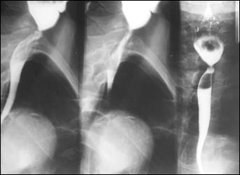 Рис. 2. Рентгенограмма шейного с верхнегр. отдела пищевода. Короткая шейная стриктура.