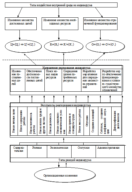 Рисунок 4.1 - Механизм взаимодействия индивидуума и внутренней среды организации (составлен по Б.М. Генкину [3])