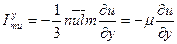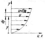 Эта формула выражает закон трения Ньютона. Знак минус говорит о том, что поток количества движения, в поперечном направлении, направлен в сторону противоположную направлению увеличения скорости. Из закона трения Ньютона следует, что вязкие напряжения, напряжения трения, появляются тогда, когда есть изменения скорости в пространстве. Жидкости, подчиняющиеся закону трения Ньютона, называются ньютоновскими жидкостями. Все газы являются ньютоновскими жидкостями. Жидкости, не подчиняющиеся закону трения Ньютона, называются реологическими или неньютоновскими. К таким жидкостям можно отнести вязкопластические жидкости (ВПЖ), например, пульпы, суспензии, нефти (при температуре, близкой к температуре застывания). При движении ВПЖ наблюдается отклонение касательного напряжения от закона трения Ньютона, который дополняется добавочным начальным напряжением сдвига. Для вязкопластических жидкостей формула для напряжений трения имеет такой вид: