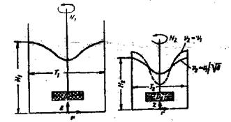 Теперь нетрудно убедиться, что для того, чтобы картины течения в двух сосудах с мешалками были подобны, должны выполняться следующие соотношения: