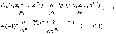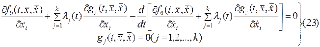 причем Отметим, что в формуле (21) неизвестными являются Для этого составим уравнения Эйлера-Лагранжа: