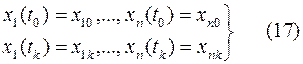вдоль кривой доставляющей Таким образом, функционал (16) рассматривается не на всех допустимых кривых, удовлетворяющих граничным условиям (17), а только на тех кривых, которые удовлетворяют системе уравнений (15). Отметим, что граничные условия (17) и уравнения связи (15) должны быть согласованы, т.е. начальная и конечная точки должны принадлежать Изучая пятую типичную задачу, мы рассматриваем в качестве уравнений связи (15) дифференциальные уравнения. В общем случае в вариационной задаче на условный экстремум функционала в качестве уравнения связи могут быть использованы алгебраические