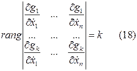 и условиям Уравнение связи (15) полагаются независимыми, т.е. ранг функций матрицы