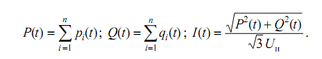 Электрическая нагрузка отдельных потребителей, а, следовательно, и суммарная их нагрузка, определяющая режим работы электростанций в энергосистеме, непрерывно меняется. Принято отражать этот факт графиком нагрузки, т. е. диаграммой изменения мощности (тока) электроустановки во времени. По виду фиксируемого параметра различают графики активной Р, реактивной Q, полной (кажущейся) S мощностей и тока I электроустановки. Как правило, графики отражают изменение нагрузки за определенный период времени. По этому признаку их подразделяют на суточные (24 ч), сезонные, годовые и т. п. В зависимости от объекта исследования различают графики нагрузок потребления электроэнергии электроприемником, цехом, предприятием, городом, в энергосистеме и др., и графики производства электрической энергии электростанцией, энергосистемой. Нагрузки электрических систем (ЭС) складываются из нагрузок отдельных потребителей. Графики электрических нагрузок отдельных потребителей зависят от их отраслевой принадлежности, суточных режимов работы, величиной потребляемой электрической мощности, времени года, дней недели (рабочие и выходные дни). Графики нагрузки используют для анализа работы электроустановок, для проектирования системы электроснабжения, для составления прогнозов электропотребления, планирования ремонтов оборудования, а также в процессе эксплуатации для ведения нормального режима работы. При проектировании и эксплуатации систем электроснабжения выделяют три вида электрической нагрузки: – активная мощность нагрузки P; – реактивная мощность нагрузки Q; – ток I. Кривая, характеризующая изменение нагрузки во времени, называется графиком электрической нагрузки (рис. 2.1). Под величиной нагрузки в данный момент времени понимается ее действующее значение, показываемое измерительными приборами с достаточно малой инерцией.