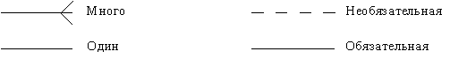 Рис. 34. Пример графического отображения связи [1] Описав также связи остальных сущностей, получим следующую схему (рис. 35).