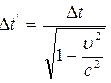 следует подчеркнуть, что сокращается размер («сжимается» пространство) вдоль направления относительного движения; поперечные размеры не меняются; - временные интервалы относительны: наблюдатель, движущийся относительно часов, показывающих интервал времени между двумя событиями Δ t', может установить, что они идут медленнее таких же часов, находящихся в его системе отсчета и показывающих интервал Δ t, т.е. имеет место эффект «замедления» времени: