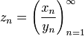 Суммой числовых последовательностей (xn) и (yn) называется числовая последовательность (zn) такая, что zn = xn + yn. Разностью числовых последовательностей (xn) и (yn) называется числовая последовательность (zn) такая, что zn = xn − yn. Произведением числовых последовательностей xn и yn называется числовая последовательность (zn) такая, что Частным числовой последовательности xn и числовой последовательности yn, все элементы которой отличны от нуля, называется числовая последовательность