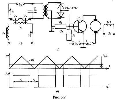 Основне призначення - управління силовим електроприводом (поширені в будівельній техніці),також застосовувалися в побутових стабілізаторах змінного струму, в регуляторах освітлення кіноконцертних залів а також в ланцюгах управління тепловоза. Одним з варіантів створення перетворювачів синусоїдної напруги в імпульси струму є використання магнітних однотактних підсилювачів (керованих дроселів) у режимі вимушеного намагнічування. В таких дроселях імпульси струму завжди мають прямокутну форму, а форма імпульсів напруги на навантаженні залежить від властивостей останнього. Звичайний керований дросель у режимі вимушеного намагнічування дозволяє отримати імпульси напруги трикутної форми на ємності (рис.3.1, а), увімкненій в ланцюг робочої обмотки.