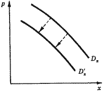 1) Цены других ресурсов. Снижение цены ресурсов, заменяющих данный ресурс, приводит к снижению спроса на данный ресурс, т. е. к сдвигу кривой спроса вниз (рис. 6), а рост цены заменяющих ресурсов приводит к росту спроса на данный ресурс, т. е. к сдвигу кривой спроса вверх (рис. 7). Для дополняющих ресурсов ситуация носит обратный характер: снижение цены дополняющих ресурсов приводит к увеличению спроса на данный ресурс, а увеличение цены дополняющих ресурсов вызывает снижение спроса на ресурс.