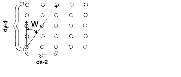 Остается выбрать одну из пяти матриц. Эта операция выполняется после оценки отношения абсолютных значений приращений координат (dx / dy или dy / dx). Например, если при dy =4 значение dx =2, то схематически это можно представить так, как изображено на рис.7.2. Очевидно, что угол поворота W при этом равен 22,5 градуса, т.е. необходимо выбрать матрицу 2. И далее, при dy =4: если dx =0, то W =0o (это матрица 0), если dx =1, то W =11,25 o (это матрица 1), если dx =3, то W =33,75 o (это матрица 3), если dx =4, то W =45 o (это матрица 4).