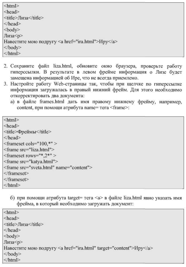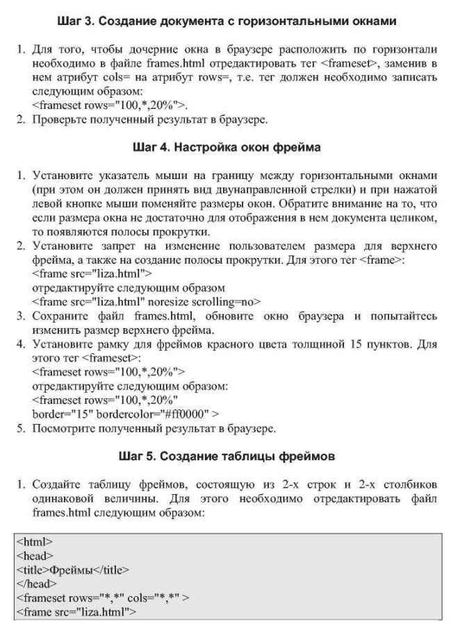 Цель: освоение и приобретение практических навыков работы с фреймами при создании Web-страниц.
