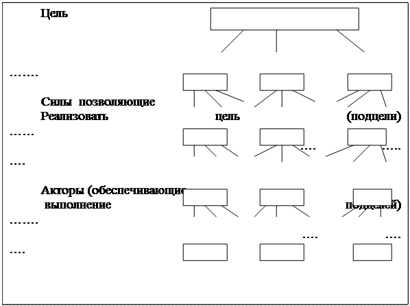 При решении сложной проблемы, ее часто разбивают на отдельные элементы, которые объединяются в группы в соответствии с распределением некоторых свойств между ними. Группы рассматриваются в качестве элементов уровня системы. Эти элементы, в свою очередь, могут быть сгруппированы в соответствии с другим набором свойств, создавая элементы еще более высокого уровня, пока не будет достигнут единственный элемент - который обычно отождествляется с целью принятия решения. Обычно все это называют иерархией. Иерархия - это тип системы, основанной на предположении, что элементы системы могут группироваться в несвязанные множества. Элементы каждой группы находятся под влиянием некоторой вполне определенной группы и в свою очередь оказывает влияние на элементы другой группы. Считаем, что элементы в каждой группе иерархии (называемой уровнем, кластером, стратой) независимы. Случай наличие зависимости должен рассматриваться отдельно. Могут быть различные типы иерархий по связям элементов нижнего и верхнего уровня. Мы будем считать, что каждый элемент верхнего уровня связан со всеми элементами нижнего уровня. Типичная иерархия для решения многих задач может быть представлена следующей схемой