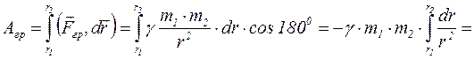 При переміщенні м.т. m2 з положення 1 в положення 2 (див. рис. 7.4) гравітаційна сила виконає роботу: