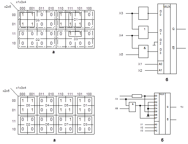 D 0 =, D 1= х 3 + х 4, D2 = 0, D3 = x 4 x 5, Реализуем функции на логических элементах И, ИЛИ, НЕ (рис. 5.9, б).