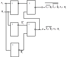 Рис. 5.12 Возможны другие реализации полусумматора на основании тождественных преобразований: