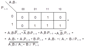 Карта Карно для функций Si и Рi дает минимальную форму и ее тождественные варианты:
