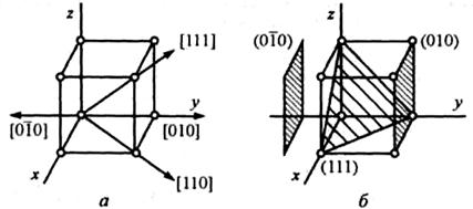 Рисунок 10 – Кристаллографические индексы направлений (а) и плоскостей (б)