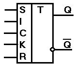 Наиболее универсальным среди синхронных триггеров является IK-триггер. Его работа описывается табл. 4.9. Обозначение синхронного триггера показано на рис. 4.10, где тактовый вход обозначен С. Как и RS-триггер, он сохраняет свое состояние при сигналах 0 на входах. Сигнал на входе I включает триггер: при I = 1, К = 0 устанавливается Qn+1 = 1,`Qn+1 = 0. Сигнал на входе К выключает триггер: при К = 1, I = 0 устанавливается Qn+1 = 0,`Qn+1 = 1. При входном сигнале I = 1, К = 1 начальное состояние триггера меняется на противоположное, что отмечает его от RS-триггера, где аналогичная комбинация сигналов запрещена. Схемная реализация IK-триггера достаточно сложна. Их схемы содержат два или три элементарных асинхронных триггера, связанных между собой. Однако, при применении IK-триггеров в интегральном исполнении нет необходимости обращаться к их внутреннему устройству, достаточно знать параметры и логику работы триггеров. IK-триггеры часто имеют дополнительные установочные входы R и S. Эти входы – асинхронные: при R = 0, S = 1 триггер мгновенно устанавливается в единичное состояние, а при R = 1, S = 0 – в нулевое.