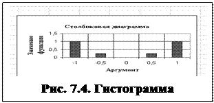 Аргумент заданной функции расположен в столбце А, а значение функции в столбце В. Необходимо построить график функции y=f(x) с применением мастера диаграмм. Нужно выделить мышкой диапазон В1:В6 и щелкнуть на панели кнопку Мастер диаграмм (или выполнить команды Вставка, Диаграмма). 1. В появившемся окне Мастер диаграмм (шаг 1 из 4) на вкладке Стандартные выбрать тип График и первый вид диаграммы. Щелкнуть кнопку Далее. 2. Появляется окно Мастер диаграмм (2 шаг из 4). Активизировать вкладку Ряд, в поле Подписи по оси Х установить курсор и выделить мышкой диапазон аргумента А2:А6. Щелкнуть кнопку Далее. 3. 4. Аналогично строится Гистограмма и другие типы диаграмм.