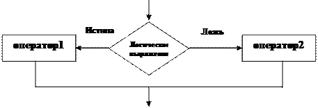 Функционирование оператора: если значение логического выражение "истина", то выполняется оператор 1, иначе выполняется оператор 2. Ниже приведено блок – схемное представление оператора.