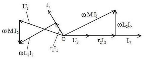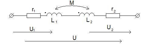 магнитные потоки самоиндукции и взаимной индукции направлены в противоположные стороны и ЭДС взаимной индукции имеют знак, обратный ЭДС самоиндукции. Приложенное к цепи напряжение связано с током соотношением: