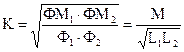 Степень индуктивной связи двух катушек характеризуется коэффициентом связи К, определяемым как среднее геометрическое из отношений потоков: