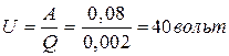 На примере посмотрим, как можно использовать эту формулу. Пример. Найти напряжение на клеммах потребителя, если через них протекает количество электричества 0,002 кулона, а произведенная работа равна 0,08 джоуля. Подставляем данные в формулу и получаем: