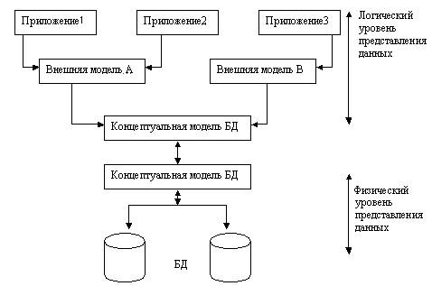 Архитектура СУБД. Базы данных и программные средства их создания и ведения (СУБД) имеют многоуровневую архитектуру, представление о которой можно получить из рис