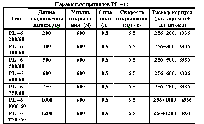 На 600 N, 24V Цилиндрические электроприводы PL 6 с усилием открывания