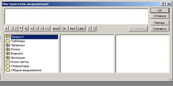Рис. 17 Бланк окна построителя выражений