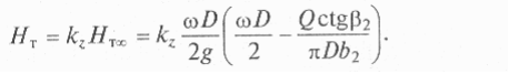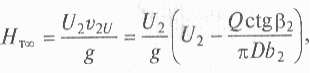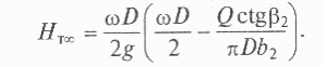 а с учетом известного соотношения для окружной скорости U2 = w (D/2 окончательно получим для теоретического напора насоса с бесконечным числом лопаток:
