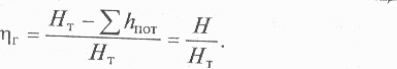 Представленная зависимость имеет минимальное значение при Q = Q0. Этот режим является расчетным, и векторы скоростей жидкости в насосе направлены по касательным (или близким к ним траекториям) к обтекаемым поверхностям (лопаткам колеса, спиральному отводу и др.). При отклонении Q от Qo условия обтекания ухудшаются, возникают дополнительные вихреобразования и растут потери энергии. Имея зависимость Σhпот =f(Q) и пользуясь формулой (6.4), получим действительную характеристику насоса. Такой вид имеют характеристики всех лопастных насосов (центробежных, осевых и диагональных). Необходимо указать, что соотношение действительного Н и теоретического Нт напоров учитывает гидравлические потери в проточной части насоса и представляет собой его гидравлический КПД: