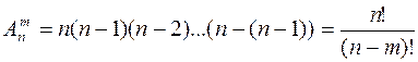 называется соединением. Эта выборка может быть как без повторений, так и с повторениями. Раздел элементарной математики, в котором для конечных множеств рассматриваются различные соединения элементов, такие, как сочетания, размещения, перестановки, а также все виды соединений с повторениями называется комбинаторика. Задачи комбинаторики впервые рассматривались в связи с возникновением теории вероятностей, где к задачам комбинаторики приводит подсчет вероятностей на основе гипотезы равновозможных элементарных событий. Размещениями Определим число размещений Будем строить произвольное соединение